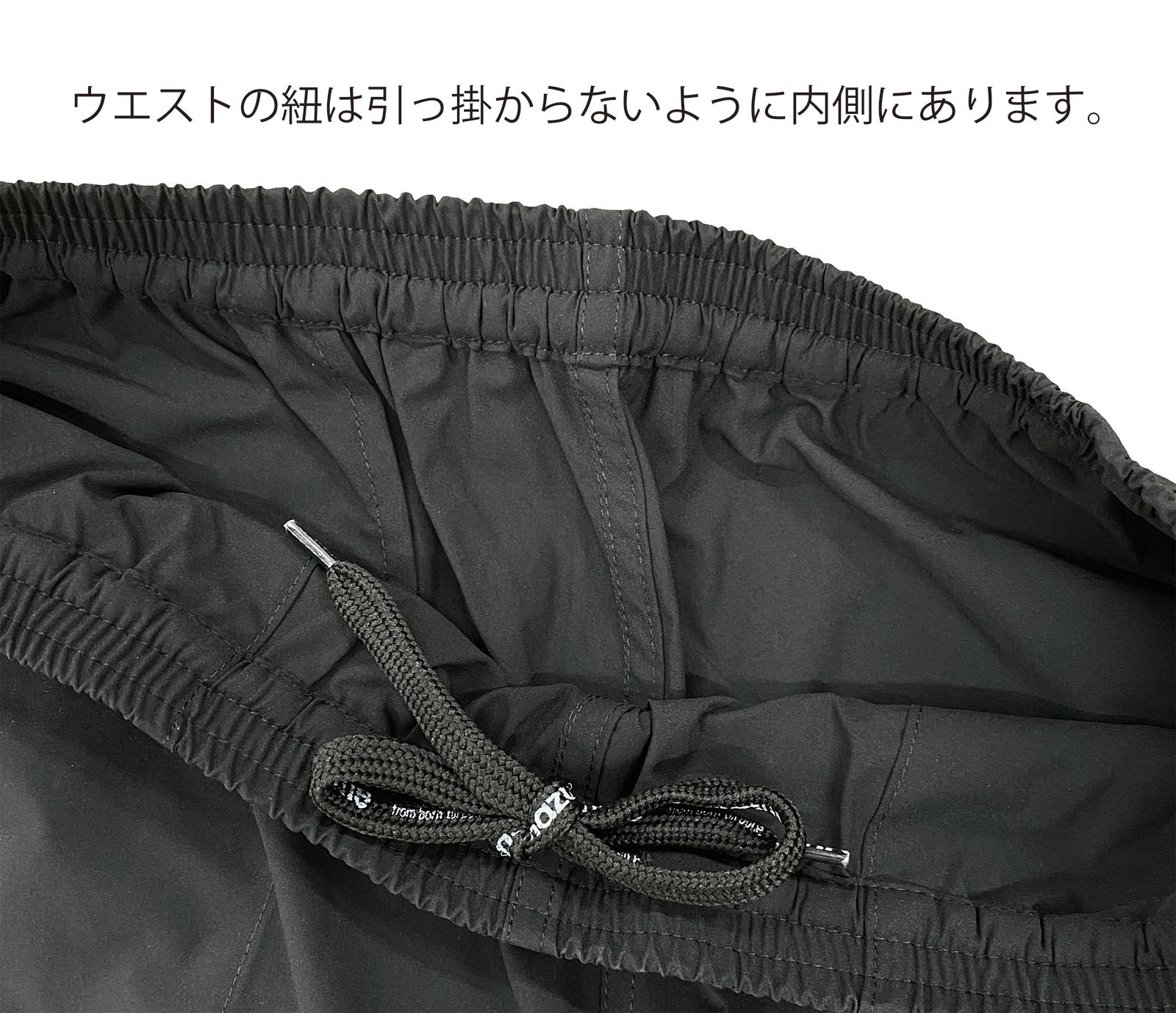 ウエスト部分は紐で調整できます。
