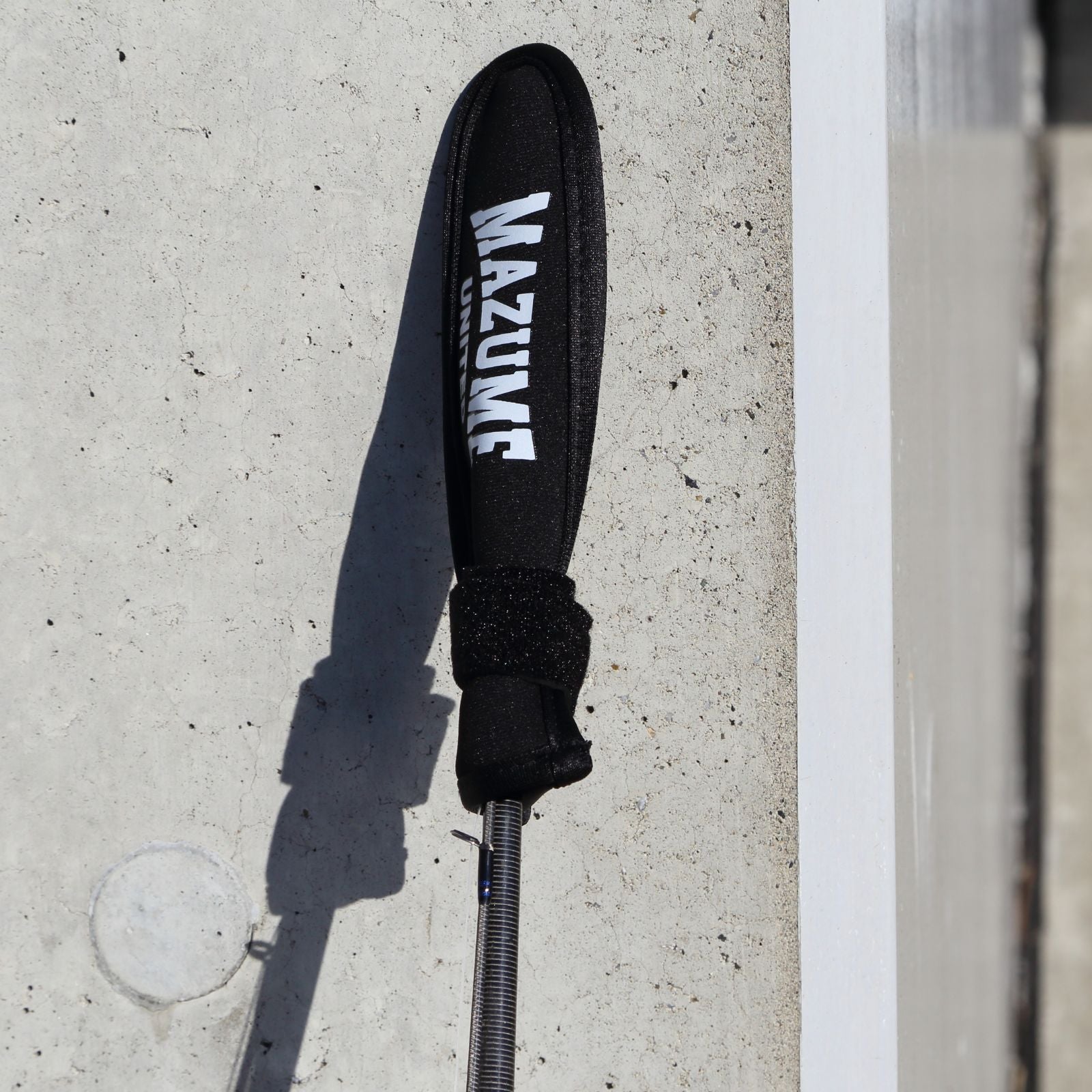 柔らかいネオプレーン素材でティップを衝撃から守ります。 ティップカバーとバットを固定するロッドベルトのセットです。1本分を想定して作っていますが、細いロッドであれば、複数本入れることができます。