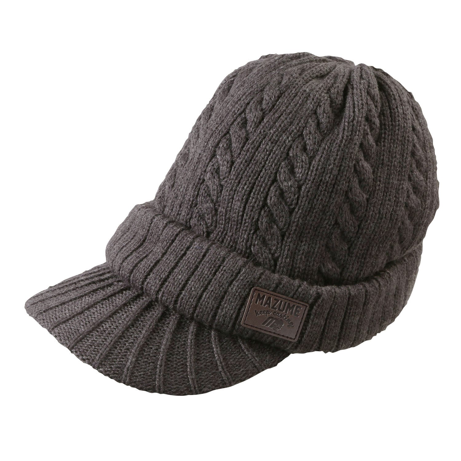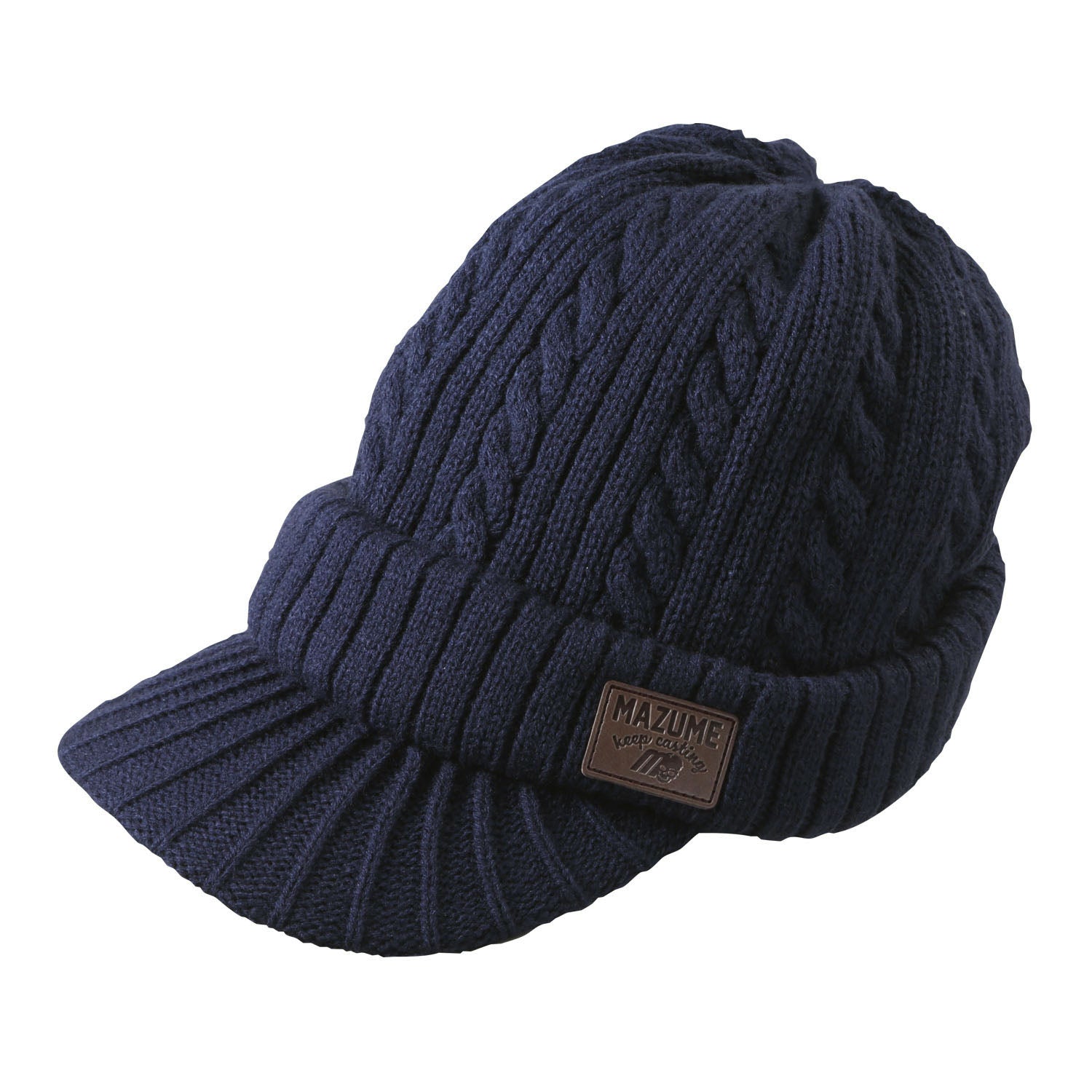 シンプルなデザインのツバ付きニット帽は、どんなコーディネートにもぴったり。