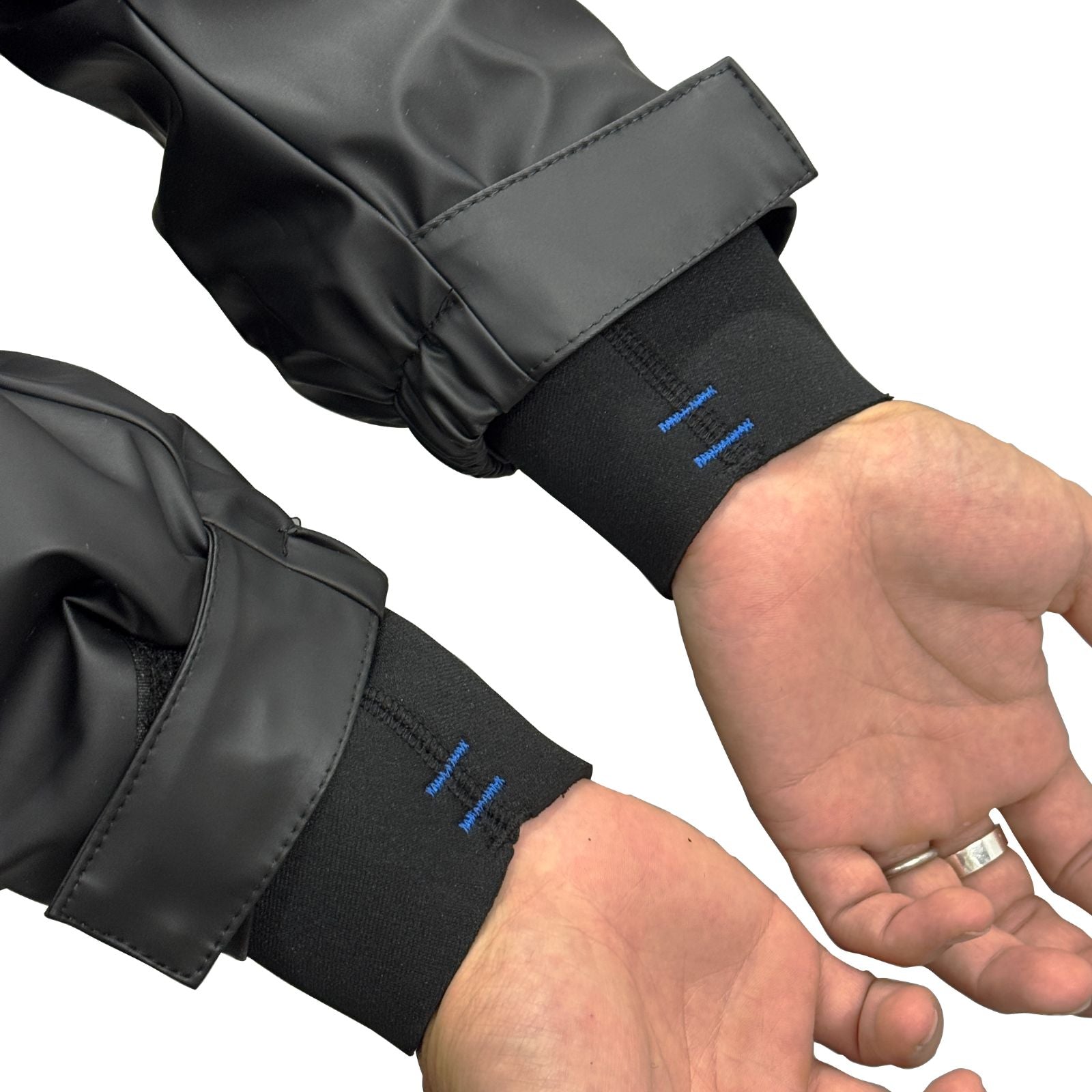 漁師カッパによく使用されている塩ビ製ではなく、ポリウレタンをメインにしたPU素材を採用しています。PU素材は塩ビと比較すると軽く、生地自体が柔らかいので、着ていてもほとんどストレスを感じません。